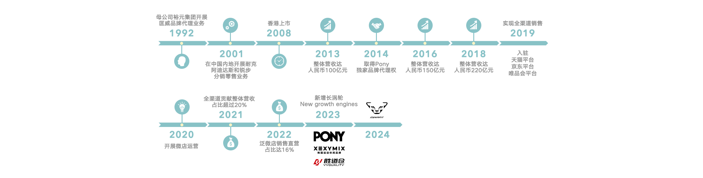 与此同时,凭借于公域流量渠道的平台店群计划,以及持续提升私域流量渠道,包括量身订造消费者导向的泛微店生态圈 — 涵盖内容丰富的微店、抖音直播蚂蚁雄兵,搭配抖音全国库存打通,以及获特选品牌伙伴授权的YYsports抖音号,进一步增强数位化实力。透过无缝结合有温度的线下业务场景与线上矩阵社群运营,我们快速成熟的生态圈已发展成为高质创收渠道,带来更佳的转换率、缩短销售周期并增加当季正价销售。